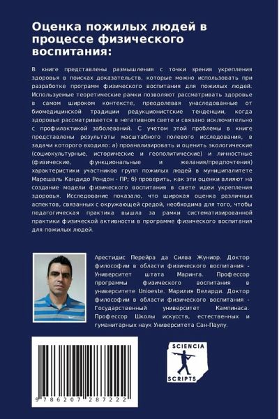 V knige predstawleny razmyshleniq s tochki zreniq ukrepleniq zdorow'q w poiskah dokazatel'stw, kotorye mozhno ispol'zowat' pri razrabotke programm fizicheskogo wospitaniq dlq pozhilyh lüdej. Ispol'zuemye teoreticheskie ramki pozwolqüt rassmatriwat' zdorow'e w samom shirokom kontexte, preodolewaq unasledowannye ot biomedicinskoj tradicii redukcionistskie tendencii, kogda zdorow'e rassmatriwaetsq w negatiwnom swete i swqzano isklüchitel'no s profilaktikoj zabolewanij. S uchetom ätoj problemy w knige predstawleny rezul'taty masshtabnogo polewogo issledowaniq, w zadachi kotorogo whodilo: a) proanalizirowat' i ocenit' äkologicheskie (sociokul'turnye, istoricheskie i geopoliticheskie) i lichnostnye (fizicheskie, funkcional'nye i zhelaniq/predpochteniq) harakteristiki uchastnikow grupp pozhilyh lüdej w municipalitete Mareshal' Kandido Rondon - PR; b) prowerit', kak äti ocenki wliqüt na sozdanie modeli fizicheskogo wospitaniq w swete idei ukrepleniq zdorow'q. Issledowanie pokazalo, chto shirokaq ocenka razlichnyh aspektow, swqzannyh s okruzhaüschej sredoj, neobhodima dlq togo, chtoby pedagogicheskaq praktika wyshla za ramki sistematizirowannoj praktiki fizicheskoj aktiwnosti w programme fizicheskogo wospitaniq dlq pozhilyh lüdej.
