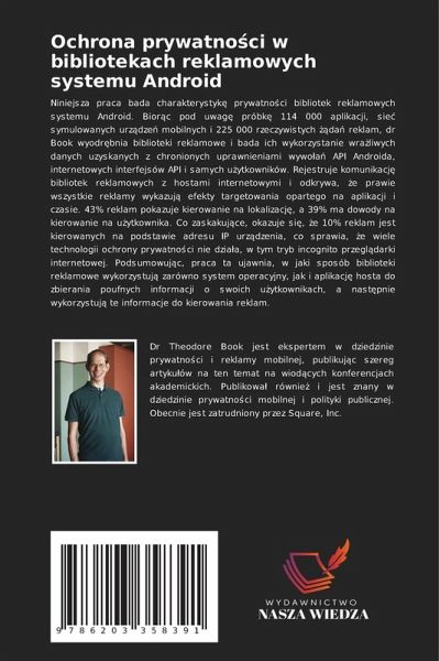 Niniejsza praca bada charakterystyk¿ prywatno¿ci bibliotek reklamowych systemu Android. Bior¿c pod uwag¿ próbk¿ 114 000 aplikacji, sie¿ symulowanych urz¿dze¿ mobilnych i 225 000 rzeczywistych ¿¿dä reklam, dr Book wyodr¿bnia biblioteki reklamowe i bada ich wykorzystanie wräliwych danych uzyskanych z chronionych uprawnieniami wywo¿ä API Androida, internetowych interfejsów API i samych u¿ytkowników. Rejestruje komunikacj¿ bibliotek reklamowych z hostami internetowymi i odkrywa, ¿e prawie wszystkie reklamy wykazuj¿ efekty targetowania opartego na aplikacji i czasie. 43% reklam pokazuje kierowanie na lokalizacj¿, a 39% ma dowody na kierowanie na u¿ytkownika. Co zaskakuj¿ce, okazuje si¿, ¿e 10% reklam jest kierowanych na podstawie adresu IP urz¿dzenia, co sprawia, ¿e wiele technologii ochrony prywatno¿ci nie dziäa, w tym tryb incognito przegl¿darki internetowej. Podsumowuj¿c, praca ta ujawnia, w jaki sposób biblioteki reklamowe wykorzystuj¿ zarówno system operacyjny, jak i aplikacj¿ hosta do zbierania poufnych informacji o swoich u¿ytkownikach, a nast¿pnie wykorzystuj¿ te informacje do kierowania reklam.