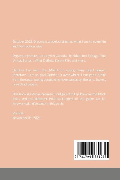 October 2021 Dreams is just that. Dreams of what I saw to come life wise and destruction wise. So, if you are in the know, this book is for you. Yes, the worst is yet to come therefore, you need this book.