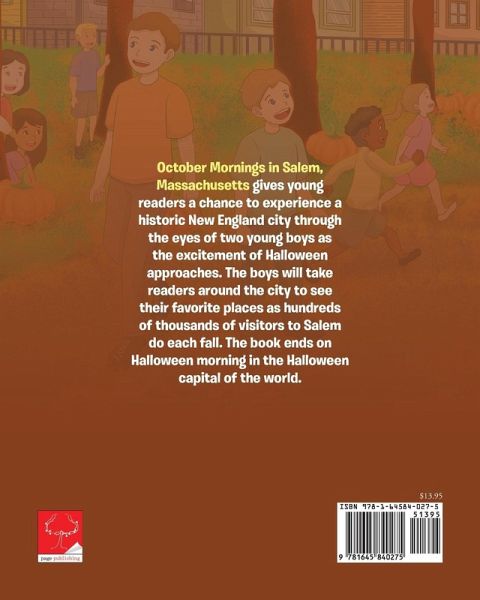 October Mornings in Salem, Massachusetts gives young readers a chance to experience a historic New England city through the eyes of two young boys as the excitement of Halloween approaches. The boys will take readers around the city to see their favorite places as hundreds of thousands of visitors to Salem do each fall. The book ends on Halloween morning in the Halloween capital of the world.