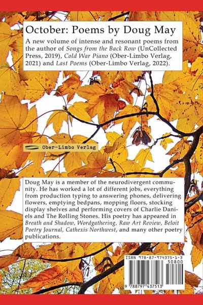 Doug May is a member of the neurodivergent community. He has worked a lot of different jobs, everything from production typing to answering the phone, delivering flowers, emptying bedpans, mopping floors, stocking display shelves and performing covers of Charlie Daniels and The Rolling Stones. His poetry has appeared in Breath And Shadow, Wordgathering, Raw Art Review, Beloit Poetry Journal, Cathexis Northwest, and many other poetry publications.
