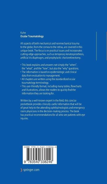 Written by a well-known expert in the field, this concise pocketbook provides clinically useful information that will be of great help to the attending ophthalmologists and emergency room physicians in the decision-making process. The book has practical recommendations for all who see patients with eye injuries.
