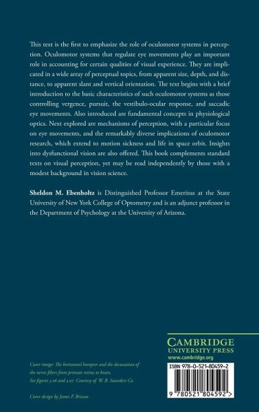 This 2001 text was the first to emphasize the role of oculomotor systems in perception. Oculomotor systems that regulate eye movements play an important role in accounting for certain qualities of visual experience. They are implicated in a wide array of perceptual topics, from apparent size, depth, and distance, to apparent slant and vertical orientation. The text begins with a brief introduction to the basic characteristics of such oculomotor systems as those controlling vergence, pursuit, the vestibulo-ocular response, and saccadic eye movements. Also introduced are fundamental concepts in physiological optics. Next explored are mechanisms of perception, with a particular focus on eye movements, and the remarkably diverse implications of oculomotor research, which extend to motion sickness and life in space orbit. Insights into dysfunctional vision are also offered. This book complements standard texts on visual perception, yet may be read independently by those with a modest background in vision science.