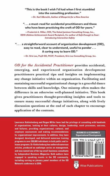 Lawrence Kokkelenberg and Regan Miller have had the privilege of consulting with hundreds of organizations, looking at their cultures, design, leadership, work processes, success, and failures; providing organizational, cultural, and employee assessment; and making recommendations for organizational improvements. In addition, they have designed, developed, and delivered numerous training programs to over 200,000 individuals in both public and in-house programs. Dr. Kokkelenberg has authored numerous articles, produced an audiotape series on management, and was named one of the top small-business consultants by Independent Business Magazine. Both authors have engaged in speaking events in the OD community, including serving as plenary panel members of the OD Network conference in 2018.