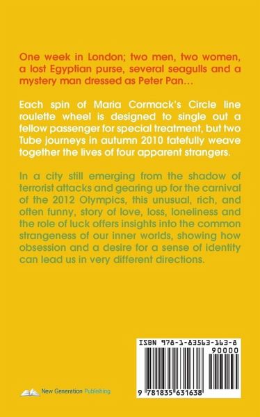 One week in London; two men, two women, a lost Egyptian purse, several seagulls and a mystery man dressed as Peter Pan... Each spin of Maria Cormack's Circle line roulette wheel is designed to single out a fellow passenger for special treatment, but two Tube journeys in autumn 2010 fatefully weave together the lives of four apparent strangers. In a city still emerging from the shadow of terrorist attacks and gearing up for the carnival of the 2012 Olympics, this unusual, rich, and often funny, story of love, loss, loneliness and the role of luck offers insights into the common strangeness of our inner worlds, showing how obsession and a desire for a sense of identity can lead us in very different directions.