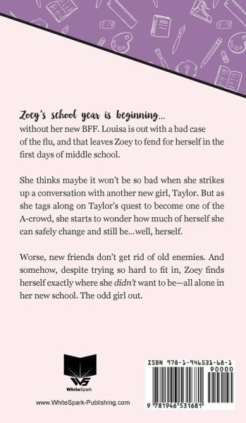 Zoey’s school year is beginning...without her new BFF. Louisa is out with a bad case of the flu, and that leaves Zoey to fend for herself in the first days of middle school. She thinks maybe it won’t be so bad when she strikes up a conversation with another new girl, Taylor. But as she tags along on Taylor’s quest to become one of the A-crowd, she starts to wonder how much of herself she can safely change and still be…well, herself. Worse, new friends don’t get rid of old enemies. And somehow, despite trying so hard to fit in, Zoey finds herself exactly where she didn’t want to be—all alone in her new school. The odd girl out.