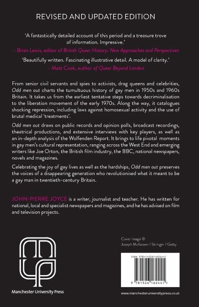 Odd men out examines the transformation of homosexual men from odd to normal during the tumultuous decades of the 1950s and 1960s. Using new and original research, John-Pierre Joyce explores contemporary attitudes to gay men and the development of a gay identity. He considers the extent and limits of homosexual repression and liberation, and analyses the dilemmas posed by the emergence of a homosexual minority. Through first-hand interviews and oral histories, Odd men out gives voice to a generation of gay men and sheds new light on a much-neglected aspect of British history.