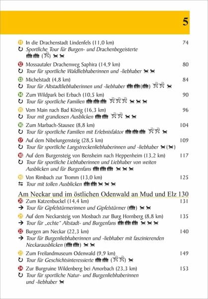 Dieser Wanderführer beschränkt sich auf den Naturraum Odenwald nördlich des Neckars mit dem Naturpark Bergstraße-Odenwald. Er liegt zwischen den Städten Darmstadt in Südhessen, Heidelberg im nördlichen Baden und Miltenberg in Unterfranken in Bayern. Bekannt ist das Mittelgebirge für seine Vielzahl an sagenumworbenen Burgen und Schlössern. Fast jede Wanderung kann mit einer Burg- oder Schlossbesichtigung verbunden werden. Die bekannteste Sage ist das Nibelungenlied. Der Odenwald überzeugt mit vielfältige Wandermöglichkeiten auf einem 10.000 km umfassenden Streckennetz. Der Wald wechselt sich mit kleinen Ortschaften und Weideflächen sowie Feldern ab, die den Blick über sanfte Hügel öffnen. Mit 24 Tagestouren liefert der Wanderführer die Grundlage für die Erkundungen dieser wunderschönen Region. Alle vorgeschlagenen Touren sind mit dem öffentlichen Nahverkehr erreichbar. Einzelne Touren sind aufgrund ihrer Länge und den Angeboten am Wegesrand besonders für Familien geeignet, aber auch der sportliche Wanderer findet Touren mit bis zu 1.000 Höhenmetern. Das Buch beinhaltet Karten, Höhenprofile, eine Übersichtskarte und GPS-Tracks zum Download.