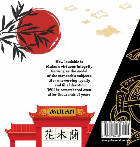 The famous girl warrior, Mulan is given a new look to appeal to modern audiences and inspire young women to be all they can be. With stunning illustrations and graphic design, the book illustrates the poem written in the 5th century as an ode to the bravery of Mulan. The "Ballad of Mulan" is a folksong from Northern Dynasties China. It recounts the story of Mulan, a girl who goes to war in place of her father, who is not fit to go. Since she has no older brother, she assumed the role of a boy and dressed as a soldier, fights in the Emperor's army. Since then, her story has become a beloved legend and it has been adapted by poets, has been shown as a theater play, and Disney Studios has produced two movie adaptations. This modern edition of Mulan is perfect as a gift for a fan of the beloved character.