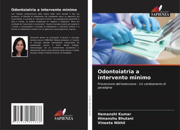 Con l'attuale comprensione della natura della carie dentale e del suo processo, la filosofia di trattamento sta cambiando verso un approccio più conservativo. Il concetto di "intervento minimo" sta guadagnando popolarità in tutto il mondo. La pratica tradizionale di "tagliare e trapanare" viene ora sostituita da "osservare e conservare". Questo manuale aiuterà gli studenti e i medici a comprendere il concetto di odontoiatria a intervento minimo e a fornire un trattamento curativo con un approccio conservativo/non invasivo.