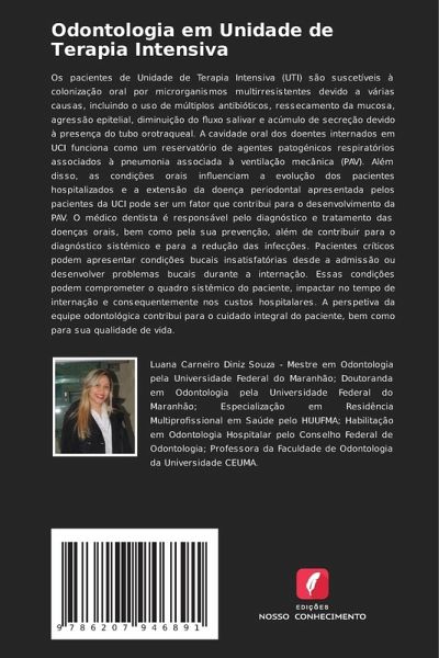 Os pacientes de Unidade de Terapia Intensiva (UTI) são suscetíveis à colonização oral por microrganismos multirresistentes devido a várias causas, incluindo o uso de múltiplos antibióticos, ressecamento da mucosa, agressão epitelial, diminuição do fluxo salivar e acúmulo de secreção devido à presença do tubo orotraqueal. A cavidade oral dos doentes internados em UCI funciona como um reservatório de agentes patogénicos respiratórios associados à pneumonia associada à ventilação mecânica (PAV). Além disso, as condições orais influenciam a evolução dos pacientes hospitalizados e a extensão da doença periodontal apresentada pelos pacientes da UCI pode ser um fator que contribui para o desenvolvimento da PAV. O médico dentista é responsável pelo diagnóstico e tratamento das doenças orais, bem como pela sua prevenção, além de contribuir para o diagnóstico sistémico e para a redução das infecções. Pacientes críticos podem apresentar condições bucais insatisfatórias desde a admissão ou desenvolver problemas bucais durante a internação. Essas condições podem comprometer o quadro sistêmico do paciente, impactar no tempo de internação e consequentemente nos custos hospitalares. A perspetiva da equipe odontológica contribui para o cuidado integral do paciente, bem como para sua qualidade de vida.