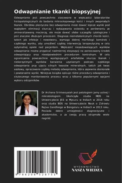Odwapnianie jest powszechnie stosowane w wi¿kszo¿ci laboratoriów histopatologicznych do badania mikroskopowego ko¿ci i innych zwapniäych tkanek. Obróbka plastyczna bez odwapniania mo¿e dawä lepsze wyniki pod wzgl¿dem eliminacji skurczu i wykazywania osteoidu w porównaniu ze zmineralizowan¿ macierz¿, ale mo¿e dawä s¿abe szczegó¿y cytologiczne i jest znacznie d¿u¿szym procesem. Diagnoza niemetabolicznych chorób ko¿ci, takich jak infekcje i nowotwory, wymaga dobrej morfologii komórek i szybkiego wyniku, aby umo¿liwi¿ szybk¿ interwencj¿ terapeutyczn¿ w celu optymalnej opieki nad pacjentem. Wi¿kszo¿¿ niezadowalaj¿cych wyników odwapniania mo¿na przypisä nadmiernej ekspozycji na zastosowany ¿rodek odwapniaj¿cy oraz nieodpowiednim procedurom kontrolnym. W celu ograniczenia powszechnie wyst¿puj¿cych artefaktów skurczu tkanek i niekorzystnych wyników barwienia uzyskanych podczas szybkiego odwapniania przy u¿yciu silnych kwasów mineralnych, takich jak kwas azotowy, opracowano szybk¿ metod¿ odwapniania, która zapewnia doskonäe i powtarzalne wyniki. Niniejsza ksi¿¿ka opisuje ró¿ne procedury odwapniania i skutecznego monitorowania procesu wraz z kilkoma popularnymi opcjami wyboru odczynników.
