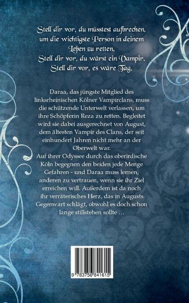 Stell dir vor, du müsstest aufbrechen, um die wichtigste Person in deinem Leben zu retten.Stell dir vor, du wärst ein Vampir.Stell dir vor, es wäre Tag.Daraa, das jüngste Mitglied des linksrheinischen Kölner Vampirclans, muss die schützende Unterwelt verlassen, um ihre Schöpferin Reza zu retten. Begleitet wird sie dabei ausgerechnet von August, dem ältesten Vampir des Clans, der seit einhundert Jahren nicht mehr an der Oberwelt war.Auf ihrer Odyssee durch das oberirdische Köln begegnen den beiden jede Menge Gefahren - und Daraa muss lernen, anderen zu vertrauen, wenn sie ihr Ziel erreichen will. Außerdem ist da noch ihr verräterisches Herz, das in Augusts Gegenwart schlägt, obwohl es doch schon längst stillstehen sollte.
