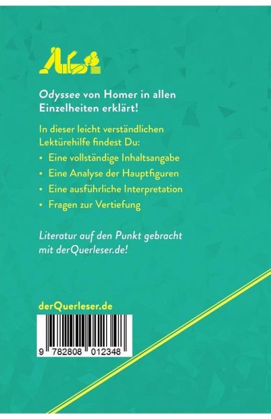 Odyssee von Homer ¿ Endlich verständlich mit der Lektürehilfe von derQuerleser.de! Diese klare und zuverlässige Analyse von Homers Odyssee aus dem 8. Jahrhundert v. Chr. hilft Dir dabei, den Klassiker schnell in seinen wichtigsten Punkten zu erfassen. Neben der Ilias ist die Odyssee das zweite berühmte Werk des griechischen Dichters Homer. Es handelt von der langen Irrfahrt und den Widrigkeiten, mit denen der König von Ithaka, Odysseus, auf seiner Heimreise konfrontiert wird. In dieser Lektürehilfe sind enthalten: ¿ Eine vollständige Inhaltsangabe ¿ Eine übersichtliche Analyse der Hauptfiguren mit interessanten Details ¿ Eine leicht verständliche Interpretation der wesentlichen Themen ¿ Fragen zur Vertiefung Warum derQuerleser.de? Egal ob Du Literaturliebhaber mit wenig Zeit zum Lesen, Lesemuffel oder Schüler in der Prüfungsvorbereitung bist, die Analysereihe derQuerleser.de bietet Dir sofort zugängliches Wissen über literarische Werke ¿ ganz klassisch als Buch oder natürlich auf Deinem Computer, Tablet oder Smartphone! Viele unserer Lektürehilfen enthalten zudem Verweise auf Sekundärliteratur und Adaptionen, die die Übersicht sinnvoll ergänzen. Literatur auf den Punkt gebracht mit derQuerleser.de!