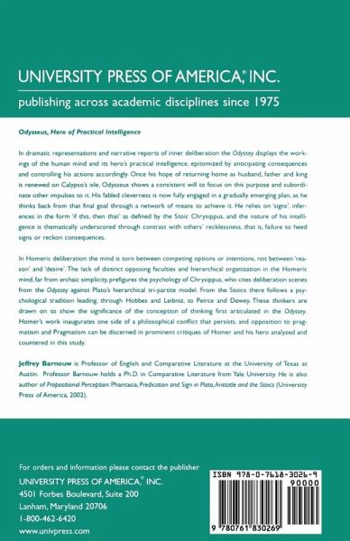 Chapter 1 Preface Chapter 2 Introduction Chapter 3 Part I: The Heart of Intelligence: Anticipating Consequences: In medias res: Two Critical Passages; Wily Yet Single-Minded; Recklessness vs. Consideration; Metis as Thinking Ahead and Then Back; Noos as Purpose in Odysseus and Zeus Chapter 4 Part II: The Contest of Philosophies: Plato and Chrysippus Claim Homer; Chrysippus's Conception of Human Motivation; Discourse and Division Within the Homeric Self; 'Mind'less Pragmatic Odysseus: Snell; German Pragmatisms: Leibniz and Kant; German P Chapter 5 Part III: Signs and Identity: Cognition and Recognition: Reconnaissance and Recognition; Homer's 'sema' and the Aristotelian and Stoic 'semeion'; More Shifts in the Foundation of Signs; Signs in Hobbes' 'Discursion' and 'Prudence'; The Scar as Sign: Chapter 6 Appendix: Writing and Oral Tradition Interact in Homer Chapter 7 Bibliography Chapter 8 Index of Names Chapter 9 Index of Concepts