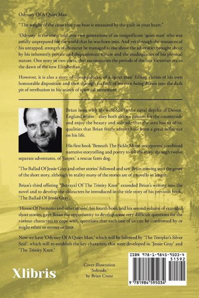Odyssey Of A Quiet Man "The weight of the cross that you bear is measured by the guilt in your heart." 'Odyssey' is the story, told over two generations of an insignificant 'quiet man' who was totally unprepared for the world that he was born into. And yet through the resources of his untapped, strength of character he managed to rise above the adversities brought about by his inherently private and dispassionate nature and the inadequacies of his physical stature. One story in two parts, that encompasses the periods of the late Victorian era to the dawn of the new Elizabethan. However, it is also a story of consequences, of a 'quiet man' falling victim of his own honourable disposition and then through no fault of his own being drawn into the dark pit of retribution in his search of spiritual atonement.