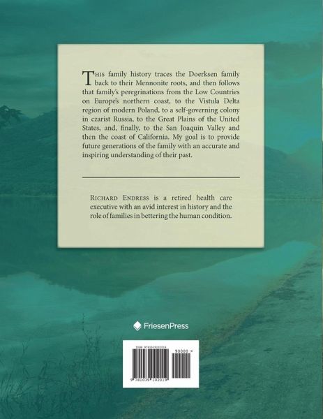 This family history traces the Doerksen family back to their Mennonite roots, and then follows that family's peregrinations from the Low Countries on Europe's northern coast, to the Vistula Delta region of modern Poland, to a self-governing colony in czarist Russia, to the Great Plains of the United States, and, finally, to the San Joaquin Valley and then the coast of California. My goal is to provide future generations of the family with an accurate and inspiring understanding of their past.