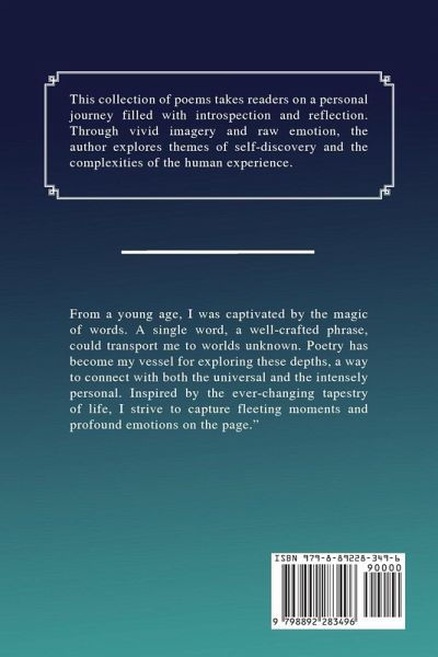 This collection of poems takes readers on a personal journey filled with introspection and reflection. Through vivid imagery and raw emotion, the author explores themes of self-discovery and the complexities of the human experience.