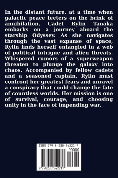 In the distant future, at a time when galactic peace teeters on the brink of annihilation, Cadet Rylin Tanaka embarks on a journey aboard the starship Odyssey. As she navigates through the vast expanse of space, Rylin finds herself entangled in a web of political intrigue and alien threats. Whispered rumors of a superweapon threaten to plunge the galaxy into chaos. Accompanied by fellow cadets and a seasoned captain, Rylin must confront her greatest fears and unravel a conspiracy that could change the fate of countless worlds. Her mission is one of survival, courage, and choosing unity in the face of impending war.