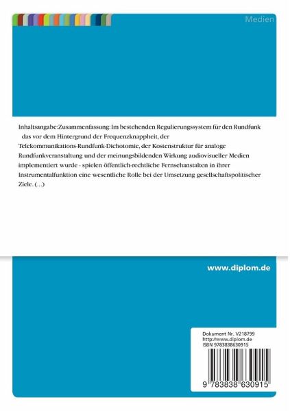 In der vorliegenden Arbeit wird zunächst die Position des öffentlich-rechtlichen Rundfunks im Spannungsfeld von Markt- und Staatsversagen mit Ansätzen der politischen Ökonomie untersucht. Im Anschluss daran erfolgt eine Analyse häufig vorgeschlagener und kontroversiell diskutierter Reformoptionen für die öffentlichen Anstalten (Komplementär vs. Integrationsfunktion). Abschließend werden - unter der Berücksichtigung von EU-Vorgaben und von internationalen Regulierungstrends - alternative Regulierungsvarianten zur Sicherstellung von meritorischer Vielfalt und Vollversorgung skizziert (Angebotsförderung, Fondsfinanzierung, Must-Carry-Regulierungen), die die Enpkoppellung der öffentlichen Aufträge von den öffentlich-rechtlichen Anstalten voraussetzen.