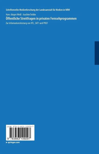 Die im folgenden vorgelegte Studie befaßt sich mit einem Teilaspekt der Frage, ob bzw. wie die im Landesrundfunkgesetz Nordrhein-Westfalen (LRG NW) niedergelegten Grundsätze für die Gestaltung privater Fernsehvollpro gramme von den Programmveranstaltern tatsächlich eingehalten werden. Die Berichterstattung der Programme von RTL, SAT 1 und PRO 7 (und außer dem von TELE 51) wird unter dem Gesichtspunkt untersucht, in welchem Umfang und in welcher Weise darin kontroverse Themen von allgemeiner Bedeutung behandelt werden. Konkret geht es bei dieser Fragestellung um die Einhaltung von