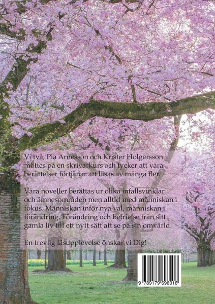 Vi två, Pia och Krister möttes på en skrivarkurs och vi anser att våra berättelser förtjänar att läsas av många fler. Våra noveller berättas ur olika infallsvinklar och ämnesområden men alltid med människan i fokus. Människan inför nya val. Människan i förändring. Förändring och befrielse från sitt gamla liv till ett nytt sätt att se på sin omvärld. Hennes eget ögonblick i tiden.