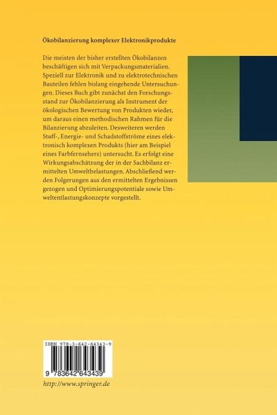 Die meisten der bisher erstellten Ökobilanzen beschäftigen sich mit Verpackungsmaterialien. Speziell zur Elektronik und zu elektrotechnischen Bauteilen fehlen bislang eingehende Untersuchungen. Dieses Buch gibt zunächst den Forschungsstand zur Ökobilanzierung als Instrument der ökologischen Bewertung von Produkten wieder, um daraus einen methodischen Rahmen für die Bilanzierung abzuleiten. Desweiteren werden Stoff-, Energie- und Schadstoffströme eines elektronisch komplexen Produkts (hier am Beispiel eines Farbfernsehers) untersucht. Es erfolgt eine Wirkungsabschätzung der in der Sachbilanz ermittelten Umweltbelastungen. Abschließend werden Folgerungen aus den ermittelten Ergebnissen gezogen und Optimierungspotentiale sowie Umweltentlastungskonzepte vorgestellt.