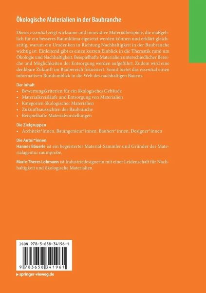 "... Das Buch gibt einen Überblick darüber, auf welchen Maßnahmen man aufbauen kann, welche Bereiche ökologische Materialien bereits abdecken, wie mehr Nachhaltigkeit in die Baubranche integriert werden kann und wo es derzeit noch Defizite gibt ..." (IBO - Österreichisches Institut für Bauenund Ökologie, ibo.at, 18. November 2021)