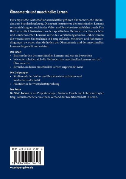 Für empirische Wirtschaftswissenschaftler gehören ökonometrische Methoden zum Standardwerkzeug. Die neuen Instrumente des maschinellen Lernens setzen sich langsam auch in der Volks- und Betriebswirtschaftslehre durch. Das Buch vermittelt Basiswissen zu den spezifischen Methoden des überwachten und unüberwachten Lernens sowie des Verstärkungslernens. Dabei werden die wesentlichen Unterschiede in Bezug auf Ziele, Methoden und Rahmenbedingungen zwischen den Methoden der Ökonometrie und des maschinellen Lernens dargestellt und erörtert.