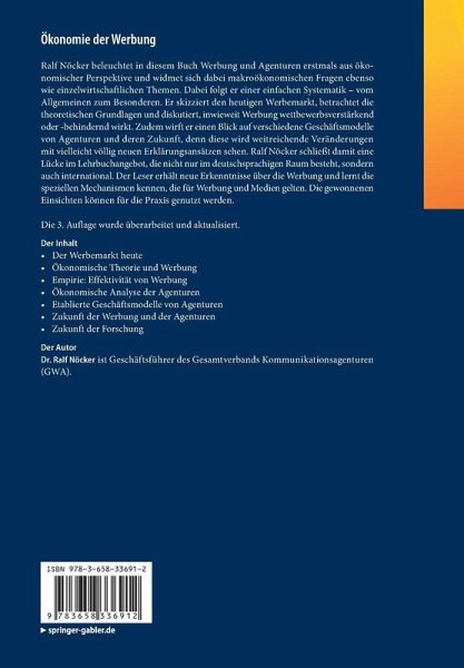"Ralf Nöcker widmet sich dem Thema Werbung aus einem spannenden und für den Themenbereich überraschend ungewöhnlichen Blickwinkel: Werbeagenturen und ihr Produkt werden systematisch aus ökonomischer Perspektive betrachtet. Anregend und anschaulich, schließt das Buch damit eine relevante Angebotslücke." Prof. Dr. Tobias Langner, Bergische Universität Wuppertal, Schumpeter School of Business and Economics, Lehrstuhl für Betriebswirtschaftslehre, insbesondere Marketing