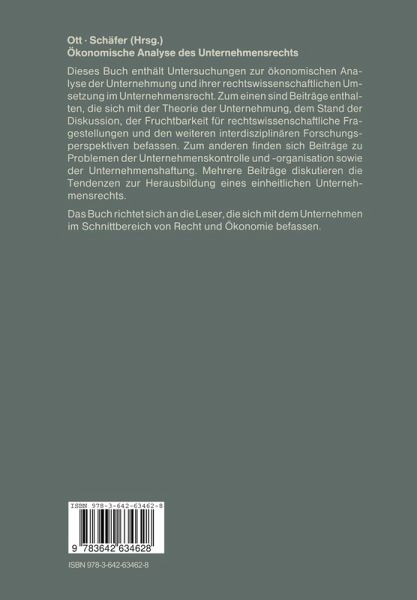 Dieses Buch enthält Untersuchungen zur ökonomischen Analyse der Unternehmung und ihrer rechtswissenschaftlichen Umsetzung im Unternehmensrecht. Zum einen sind Beiträge enthalten, die sich mit der Theorie der Unternehmung, dem Stand der Diskussion, der Fruchtbarkeit für rechtswissenschaftliche Fragestellungen und den weiteren interdisziplinären Forschungsperspektiven befassen. Zum anderen finden sich Beiträge zu Problemen der Unternehmenskontrolle und -organisation sowie der Unternehmenshaftung. Mehrere Beiträge, darunter auch die der amerikanischen Teilnehmer diskutieren die Tendenzen zur Herausbildung eines einheitlichen Unternehmensrechts. Das Buch richtet sich an die Leser, die sich mit dem Unternehmen im Schnittbereich von Recht- und Ökonomie befassen.