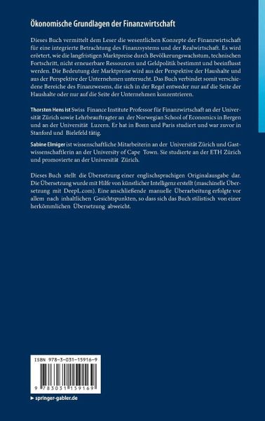 Dieses Buch vermittelt dem Leser die wesentlichen Konzepte der Finanzwirtschaft für eine integrierte Betrachtung des Finanzsystems und der Realwirtschaft. Es wird erörtert, wie die langfristigen Marktpreise durch Bevölkerungswachstum, technischen Fortschritt und nicht erneuerbare Ressourcen bestimmt und beeinflusst werden. Die Bedeutung von Marktpreisen wird sowohl aus der Perspektive der Haushalte als auch aus der Perspektive der Unternehmen untersucht. Das Buch verbindet somit verschiedene Bereiche des Finanzwesens, die sich in der Regel entweder nur auf die Seite der Haushalte oder nur auf die Seite der Unternehmen konzentrieren.