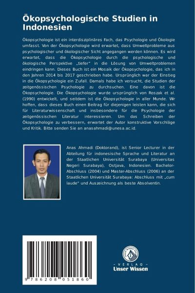 Ökopsychologie ist ein interdisziplinäres Fach, das Psychologie und Ökologie umfasst. Von der Ökopsychologie wird erwartet, dass Umweltprobleme aus psychologischer und ökologischer Sicht angegangen werden können. Es wird erwartet, dass die Ökopsychologie durch die psychologische und ökologische Perspektive "tiefer" in die Lösung von Umweltproblemen eindringen kann. Dieses Buch ist ein Mosaik der Ökopsychologie, das ich in den Jahren 2014 bis 2017 geschrieben habe. Ursprünglich war der Einstieg in die Ökopsychologie ein Zufall. Damals habe ich versucht, die Studien der zeitgenössischen Psychologie zu durchsuchen. Eine davon ist die Ökopsychologie. Die Ökopsychologie wurde ursprünglich von Roszak et al. (1990) entwickelt, und seitdem ist die Ökopsychologie in aller Munde. Wir hoffen, dass dieses Buch einen Beitrag für diejenigen leisten kann, die sich für Literaturwissenschaft und insbesondere für die Psychologie der zeitgenössischen Literatur interessieren. Um das Schreiben der Ökopsychologie zu verbessern, erwartet der Autor konstruktive Vorschläge und Kritik. Bitte senden Sie an anasahmadi@unesa.ac.id.