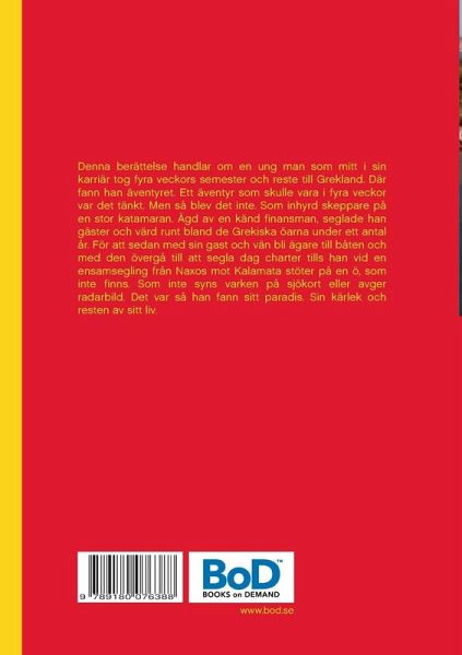 Denna berättelse handlar om en ung man som mitt i sin karriär tog fyra veckors semester och reste till Grekland. Där fann han äventyret. Ett äventyr som skulle vara i fyra veckor var det tänkt. Men så blev det inte. Som inhyrd skeppare på en stor katamaran. Ägd av en känd finansman, seglade han gäster och värd runt bland de Grekiska öarna under ett antal år. För att sedan med sin gast och vän bli ägare till båten och med den övergå till att segla dag charter tills han vid en ensamsegling från Naxos mot Kalamata stöter på en ö, som inte finns. Som inte syns varken på sjökort eller avger radarbild. Det var så han fann sitt paradis. Sin kärlek och resten av sitt liv.