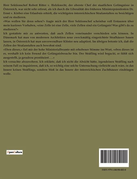 Was verbirgt sich hinter den Mauern der österreichischen Strafanstalten? Diese Frage führt uns in die düstere Welt der Gefängnisse im Österreich der frühen 20. Jahrhunderts. Stefan Großmann, ein scharfsinniger Beobachter seiner Zeit, entführt uns in eine Gesellschaft, die von sozialen Spannungen und politischen Umbrüchen geprägt ist. Inmitten dieser Kulisse beleuchtet er die Lebensbedingungen der Insassen und das Justizsystem, das sie gefangen hält. Die Erzählung bietet einen tiefen Einblick in die menschliche Psyche und die Mechanismen der Macht, die das Schicksal der Gefangenen bestimmen. Großmanns Werk ist nicht nur eine kritische Auseinandersetzung mit dem Strafvollzug, sondern auch eine Reflexion über Gerechtigkeit und Menschlichkeit. Durch die detaillierte Darstellung der Charaktere und ihrer Schicksale wird der Leser in eine Welt voller Konflikte und moralischer Dilemmata gezogen. Die Lektüre dieses Buches eröffnet neue Perspektiven auf die sozialen und rechtlichen Strukturen der damaligen Zeit und regt zum Nachdenken über die Bedeutung von Freiheit und Verantwortung an.