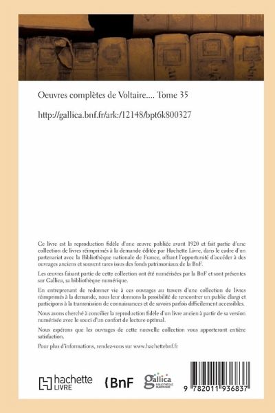 Oeuvres completes de Voltaire - Tome XXXI by Voltaire. This book is a reproduction of the original book published in 1862 and may have some imperfections such as marks or hand-written notes."
