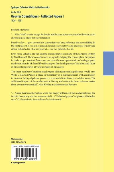 The sheer number of mathematical papers of fundamental significance would earn Weil's Collected Papers a place in the library of a mathematician with an interest in number theory, algebraic geometry, representations theory, or related areas. The additional import of the mathematical history and culture in these volumes makes them even more essential." Neal Koblitz in Mathematical Reviews