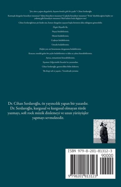 "¿iir, tüm o yo¿un duygularla, hayat¿n kendisi gibi bir ¿eydir." - Cihan Serdaro¿lu Karmä¿k duygular hissediyor musunuz? Yaln¿z hissediyor musunuz? Co¿kulu hissediyor musunuz? "Evim" diyebilece¿iniz hiçbir yer yokmu¿ gibi hissediyor musunuz? Ruh haliniz h¿zla de¿i¿iyor mu? Cihan Serdaro¿lu'nun ¿iir kitab¿ size, benzer duygular¿ yäayan bäka birisinin daha oldu¿unu gösterebilir. Özgür Hayaller'de, Ne¿eyi bulabilirsiniz. Hüznü bulabilirsiniz. Co¿kuyu bulabilirsiniz. Umudu bulabilirsiniz. Hiçbir yere ait hissetmeme duygusunu bulabilirsiniz. K¿sacas¿, tan¿d¿k gelen bir ¿eyler bulabilirsiniz ve daha az yaln¿z hissedebilirsiniz. Ayr¿ca, romantizmi hissedebilirsiniz. Yäam¿n Gölgesindeki ¿nsanlar'¿n yazar¿ndan. Cihan Serdaro¿lu, gazetecilikte bilim doktoru. "Bu kitap ruh ve yäam..." Goodreads yorumu "Mutlaka okunmal¿." Goodreads yorumu