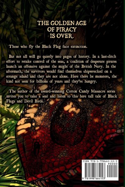 The golden age of piracy is over. Those who fly the Black Flag face extinction. But not all will go quietly into pages of history. In a last-ditch effort to retake control of the seas, a coalition of desperate pirates launch an offensive against the might of the British Navy. In the aftermath, the survivors would find themselves shipwrecked on a strange island and they are not alone. Here there be monsters, the kind not seen for billions of years and they're hungry. The author of the award-winning Cotton Candy Massacre series invites you to take a seat and listen to this here tall tale of Black Flags and Devil Birds.
