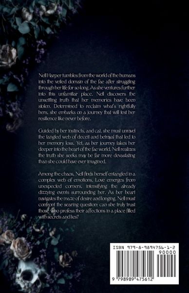 This book contains dark topics. Please look through the content warning before reading. Found in the beginning of the book or on dakotamonroe.com/contentwarnings Nell Harper tumbles from the world of the humans into the veiled domain of the fae after struggling through her life for so long. As she ventures further into this unfamiliar place, Nell discovers the unsettling truth that her memories have been stolen. Determined to reclaim what's rightfully hers, she embarks on a journey that will test her resilience like never before. Guided by her instincts, and cat, she must unravel the tangled web of deceit and betrayal that led to her memory loss. Yet, as her journey takes her deeper into the heart of the fae world, Nell realizes the truth she seeks may be far more devastating than she could have ever imagined. Among the chaos, Nell finds herself entangled in a complex web of emotions. Love emerges from unexpected corners, intensifying the already dizzying events surrounding her. As her heart navigates the maze of desire and longing, Nell must confront the searing question: can she truly trust those who profess their affections in a place filled with secrets and lies? This book is the first in a trilogy and ends on a cliffhanger. It is an easy, why-choose, dark romantasy read, with light world-building. It does contain triggering content. Ideal for those who love the From Blood and Ash and The Plated Prisoner series!