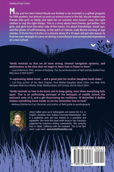 Molly is ten and her life is about to change dramatically. During a tumultuous and unexpected experience at a new school, she learns that she has to find her own strength to carry on. This is a story of how it feels to be bullied and the inner transformation that occurs. It's about best friends and frenemies. And it's about being vulnerable and the power of our own minds to build us up and see us through tough times. The story is mostly for adult women to help them heal from their own childhood traumas with bullying. The story can help them uncover forgotten feelings and heal them with adult insight. The book is also appropriate for junior high readers on up. Ms. Dalton's words are courageously accurate when expressing the wonder, doubts, and pleasures of being a child on the cusp of puberty. Molly's quest for authentic friendship, love, and acceptance will remind us all about the humanity of youth.