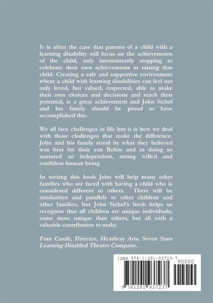 "Your son has learning difficulties." This, we were told when our son, Robin, was 2 1/2 years old. The book describes our experiences, good and bad, all through his childhood and into adulthood. How his behaviour varied from his siblings', how friends and family reacted. And about what we accomplished and where we failed. The idea of writing this book was that it might be useful for parents in the same situation we faced fifty years ago. We, my wife, Jane, and I benefitted by meeting and learning from the experiences of other parents. So, here it is. I sincerely hope it will help you in some way in the tremendous task you may be facing.
