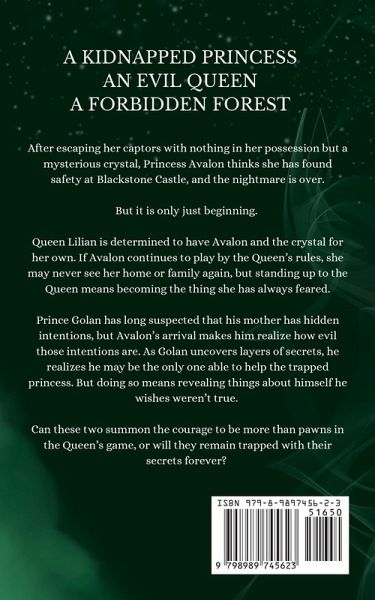 After escaping her captors with nothing in her possession but a mysterious crystal, Princess Avalon thinks she has found safety at Blackstone Castle, and the nightmare is over. But it is only just beginning. Queen Lilian is determined to have Avalon and the crystal for her own. If Avalon continues to play by the Queen's rules, she may never see her home or family again, but standing up to the Queen means becoming the thing she has always feared. Prince Golan has long suspected that his mother has hidden intentions, but Avalon's arrival makes him realize how evil those intentions are. As Golan uncovers layers of secrets, he realizes he may be the only one able to help the trapped princess. But doing so means revealing things about himself he wishes weren't true. Can these two summon the courage to be more than pawns in the Queen's game, or will they remain trapped with their secrets forever?
