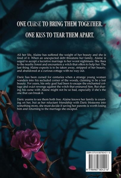 One curse to bring them together. One kiss to tear them apart. All her life, Alaine has suffered the weight of her beauty and she is tired of it. When an unexpected debt threatens her family, Alaine is urged to accept a lucrative marriage to her worst nightmare. She flees to the nearby forest and encounters a witch that offers to help her. The last thing Alaine expects is to be taken away, stripped of her beauty, and abandoned at a curious cottage with no way out. Daric has been cursed for centuries when a strange young woman wanders into his secluded corner of the woods, claiming to be a lost beauty. For years, his only goal had been to escape the enchanted cottage and exact revenge against the witch that ensnared him. But sharing his curse with Alaine might not be so bad, especially if she's the one that can break it. Daric yearns to see them both free. Alaine knows her family is counting on her, but as her reluctant friendship with Daric blossoms into something more, she must decide if saving her parents is worth losing him and returning to the marriage she escaped. Let this sweet fairytale romance with forced proximity and unexpected friendship sweep you off your feet. In this romantic Beauty and the Beast retelling, the villain isn't always who they seem to be, and curses are sometimes blessings in disguise.