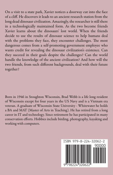 On a visit to a state park, Xavier notices a doorway cut into the face of a cliff. He discovers it leads to an ancient research station from the long dead dinosaur civilization. Amazingly, the researcher is still there in a technologically maintained form. As the two become friends Xavier learns about the dinosaurs' lost world. When the friends decide to use the results of dinosaur science to help humans deal with the problems they face, they encounter challenges. The most dangerous comes from a self-promoting government employee who wants credit for revealing the dinosaur civilization's existence. Can they succeed in their goals despite the challenges? Can the world handle the knowledge of the ancient civilization? And how will the two friends, from such different backgrounds, deal with their future together?