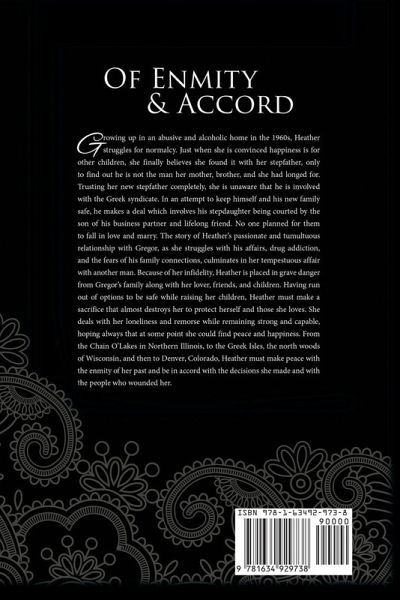 Growing up in an abusive, alcoholic home, Heather struggles for normalcy. She believes she has found it with her stepfather, only to discover he is not the man her mother, brother, and she had longed for. Trusting him completely, they are unaware of his involvement with the Greek syndicate. In an attempt to keep his new family safe, he makes a deal involving Heather being courted by Gregor, the son of his business partner and lifelong friend. The story revolves around Heather's passionate and tumultuous relationship with Gregor, as she struggles with his affairs, drug addiction, and the reality of his family connections. Ultimately, Heather is placed in grave danger from Gregor's family. Having run out of options to be safe, she must make a sacrifice that almost destroys her to protect herself and those she loves. She deals with her loneliness and remorse while remaining strong and capable, hoping that eventually she'd find peace and the happily-ever-after of her dreams. From the Chain O'Lakes in Illinois, to the Greek Isles, the north woods of Wisconsin, and Denver, Colorado, Heather comes to accord with the enmity of her past and the her past decisions and the decisions made for her.