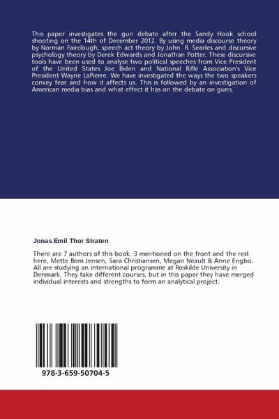 This paper investigates the gun debate after the Sandy Hook school shooting on the 14th of December 2012. By using media discourse theory by Norman Fairclough, speech act theory by John. R. Searles and discursive psychology theory by Derek Edwards and Jonathan Potter. These discursive tools have been used to analyse two political speeches from Vice President of the United States Joe Biden and National Rifle Association's Vice President Wayne LaPierre. We have investigated the ways the two speakers convey fear and how it affects us. This is followed by an investigation of American media bias and what effect it has on the debate on guns.