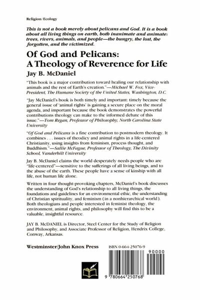 Jay McDaniel's book discusses the understanding of God's relationship to all living things, the foundations and guidelines for a life-centered ethic, the understanding of Christian spirituality, and feminism. It is a powerful statement on justice, peace, and respect for the integrity of all creation.