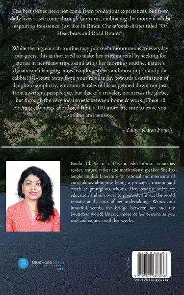 While the regular cab routine may just seem monotonous to everyday cab-goers, this author tried to make her trips museful by seeking for stories in her many trips assimilating her morning routine, nature's dynamism, changing auras, winding streets and most importantly the cabbie! Deroute away from your regular day towards a destination of laughter, simplicity, emotions & tales of life as penned down not just from a writer's perspective, but that of a traveler, not across the globe, but through the very local streets between home & work. These 12 riveting cab notes, shortlisted from a 100 more, are sure to leave you smiling and pensive. Amidst frustrating cancellations & unavoidable reroutes, maybe life is just desirous to enhance your journey! The best stories need not come from prodigious experiences, but from daily lives as we route through our turns, embracing the moment whilst capturing its essence, just like in Bindu Chelat's cab diaries titled "Of Heartbeats & Road Routes".