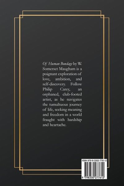 Of Human Bondage by W. Somerset Maugham is a poignant exploration of love, ambition, and self-discovery. Follow Philip Carey, an orphaned, club-footed artist, as he navigates the tumultuous journey of life, seeking meaning and freedom in a world fraught with hardship and heartache.
